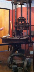 The invention of the glass press revolutionized glass making in America by replacing the extremely complex glass-blowing process we had just seen with something even a child can do. To demonstrate this, she recruited a four-year-old from the audience.