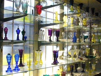 Wall of glass in the museum’s permanent collection (Image Credit: Sandwich Glass Museum)We visited the Sandwich Glass Museum this past spring, when I was experiencing a bout of severe Cape deprivation, and my daughter and husband agreed that I needed emergency treatment.