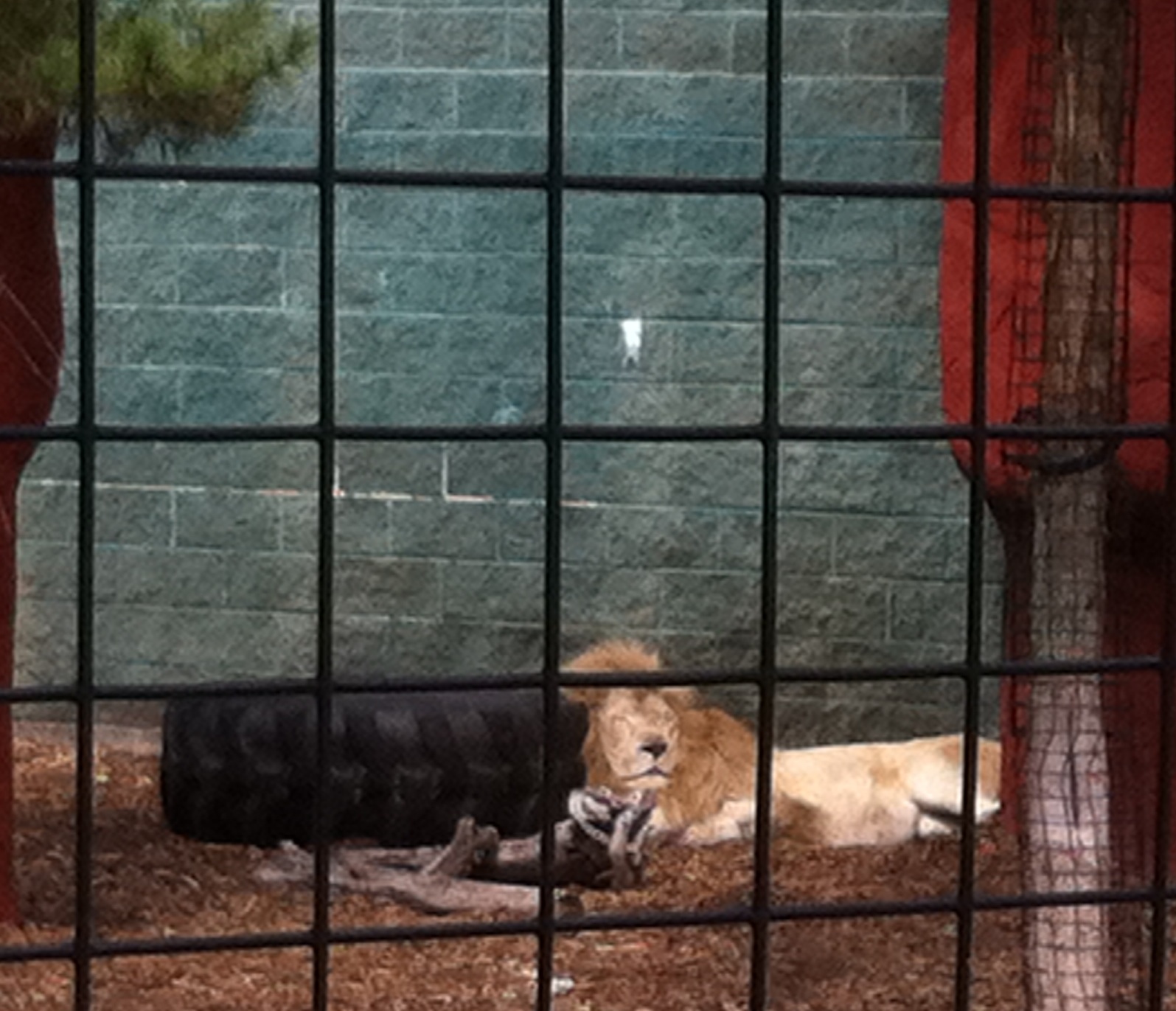 Although he's widely referred to as a white lion, the lion at Capron Park is what's called a leucistic lion, and is not an albino. Although he has lighter than normal fur, his eyes are reportedly normal. (Not that we've ever actually seen them. He's quite the sleeper.)