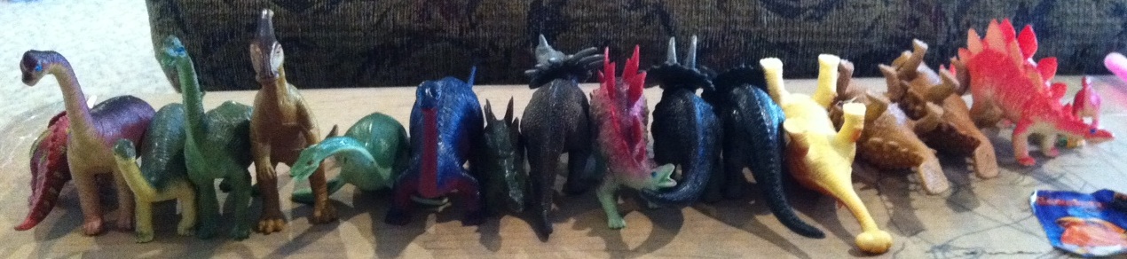 Figure 2. Line up the baits, spiky bits in back, just outside the hunter’s lair. (Note, this will mean putting any Ankylosaurs upside-down.)