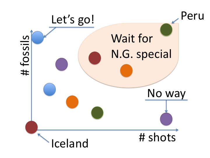 On the other hand, exploring paleontological sites in Chile would require several extra shots. Not as many as neighboring Peru, but still too many shots, The Four-Year-Old finally and very reluctantly decided. Which is why we will have to wait for the National Geographic special. Fortunately, the National Geographic Society is at least partly funding the excavation, so hopefully we won’t have to wait too long. In the meantime, we’ll content ourselves with mounting an expedition to the Dinosaur Museum in Utah and Colorado.