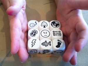 So I’ve turned the blog over to The Four-Year-Old. As I type, she is busily rolling the Story Cubes looking for a good story to fall out.