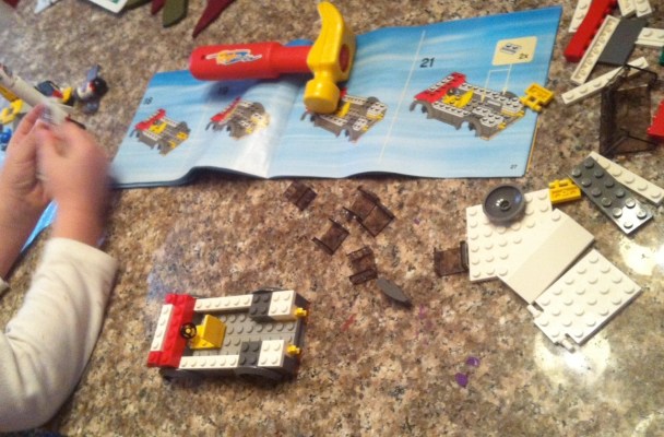 As part of her Mars Rover Curiosity Liftoff Celebration, The Four-Year-Old built a satellite launch pad out of Legos, with only a few targeted assists from her parents. While hard at work on the cargo truck, The Four-Year-Old paused long enough to ask: