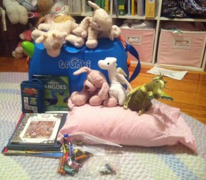 For those of you unfamiliar with Trunki, it’s a hard-sided plastic child’s suitcase with wheels and a strap that can be used for carrying or pulling. We use ours as a combination toy/child transport pod. Trunki holds enough toys, books, games, and crayons to keep The Four-Year-Old entertained on a plane or in a hotel room for a week, yet is small enough that packing and pulling Trunki remain child-sized tasks. (And because Trunki fits under the seat in front of The Four-Year-Old on the plane, her precious cargo is always in sight and perhaps more importantly, within reach.)