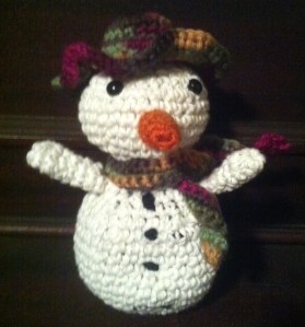 Amigurumi snowman created using the Sparkles the Snowman pattern in Nicki Trench