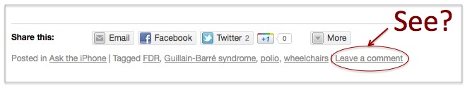 Reading spam comments can be entertaining, but it’s much more fun to read comments from actual readers. If you’ve clicked through to the full page of a post, the comment field at the bottom sort of jumps out at you.