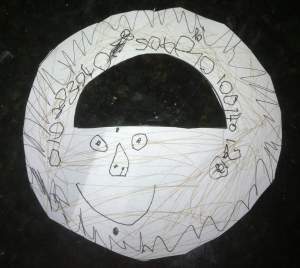 The Four-Year-Old disappeared upstairs. When she returned, she handed me a hand-drawn medallion of my own. “You’ll need this.”
