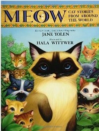 Our mini-course in animal folk tales continued this week with Jane Yolen’s Meow: Cat Stories from Around the World. Yolen’s collection mixes familiar nursery rhymes and Aesop fables with lesser known stories from India, Burma, Oman, and Thailand. Within its pages, you and your child will discover why tiger is angry at cat, why cat always lands on her feet, why having one very good trick is better than having dozens of poor ones, and most importantly, why cats and mice don’t always get along.