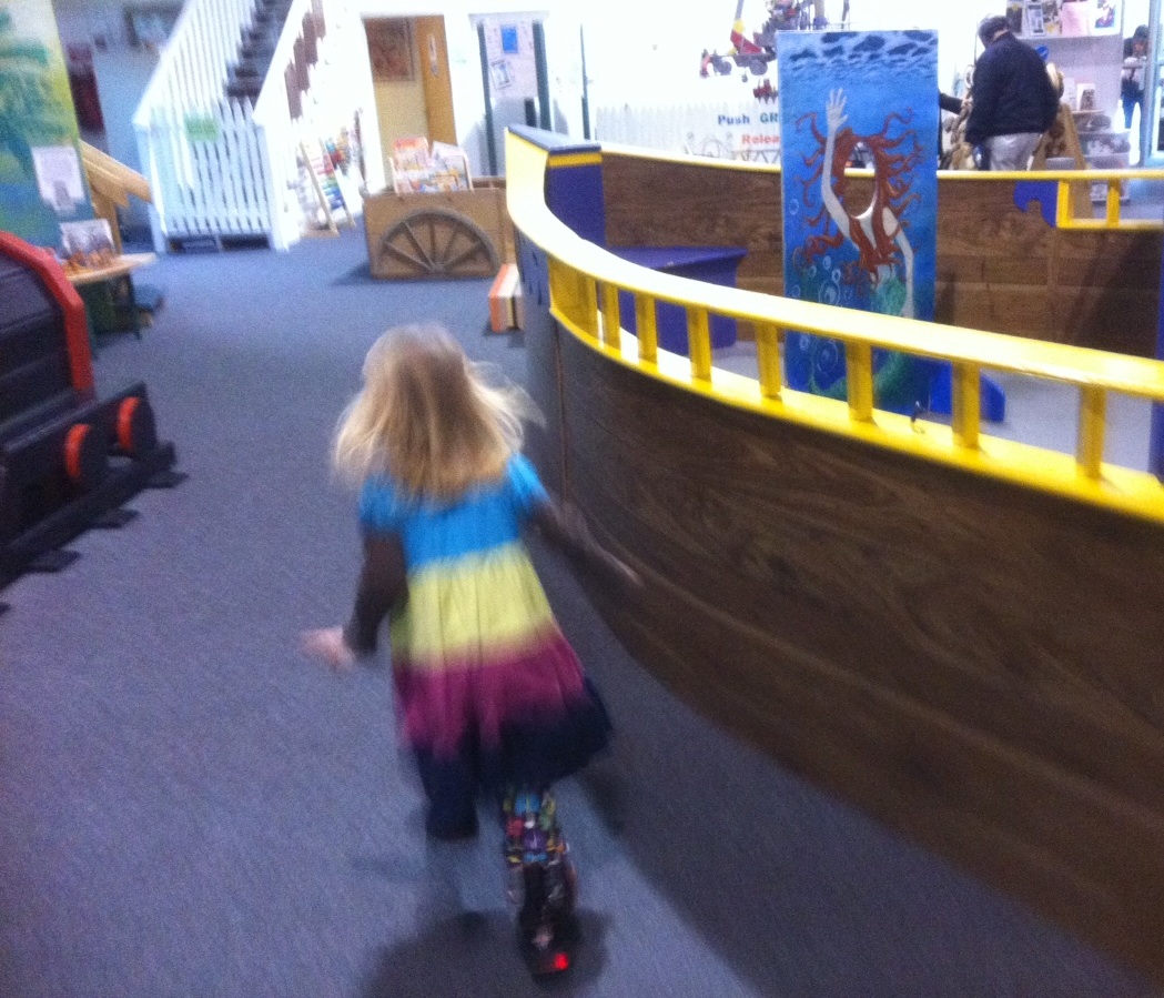 The Five-Year-Old demonstrating the vroominess of her propeller at the Cape Cod Children's Museum.