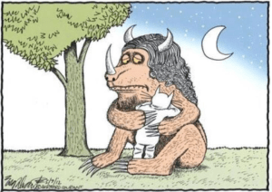 Our favorite of the various Maurice Sendak tributes wandering around Facebook this week. This comes to us via the Eric Carle Museum. (Illustration by Bob Englehart, the Hartford Courant’s editorial cartoonist)