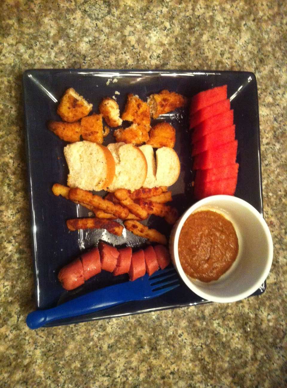 The Five-Year-Old: “Hot dogs, chicken nuggets, bread, and french fries. And I want some new-timey ketchup too.”