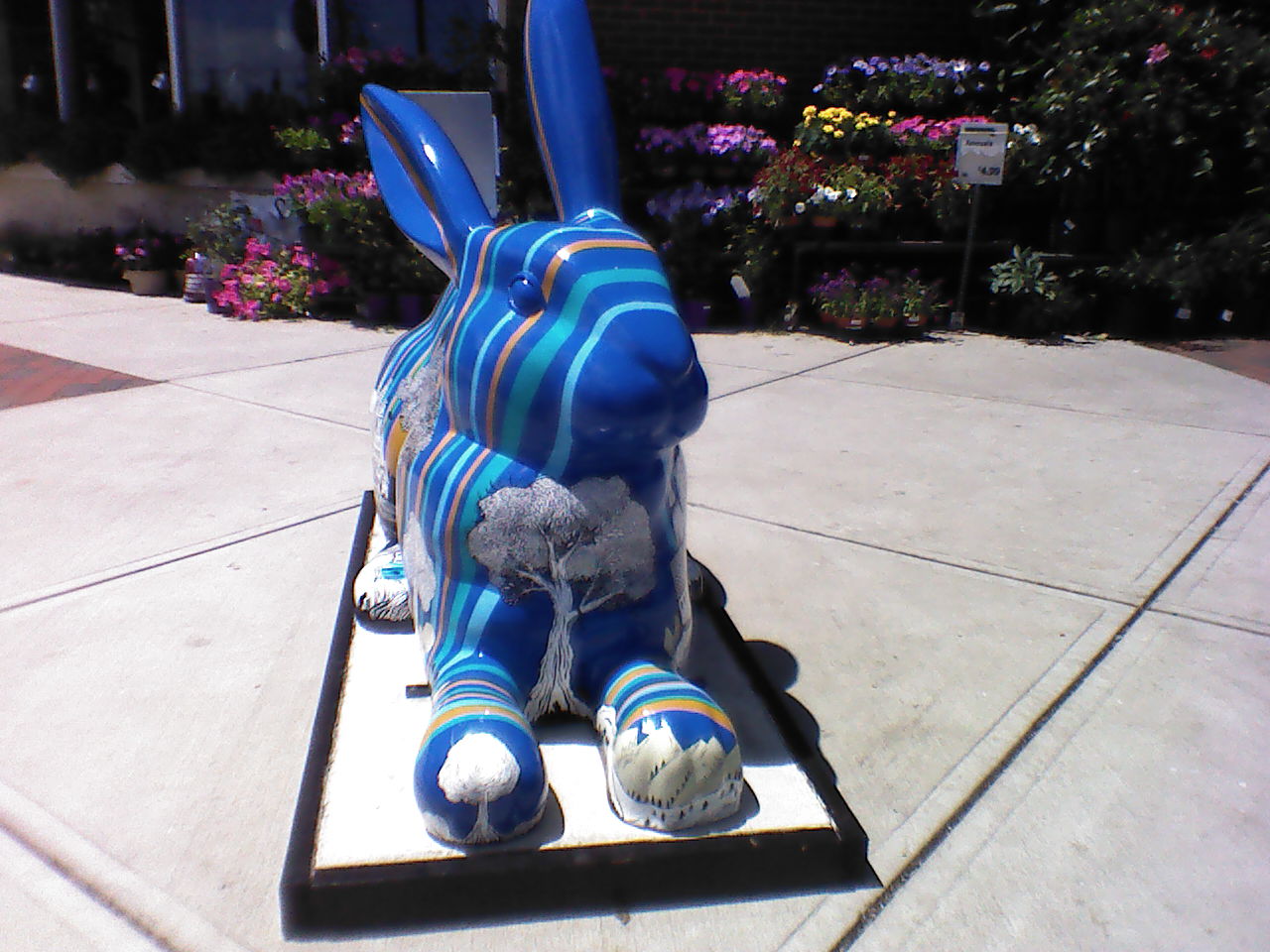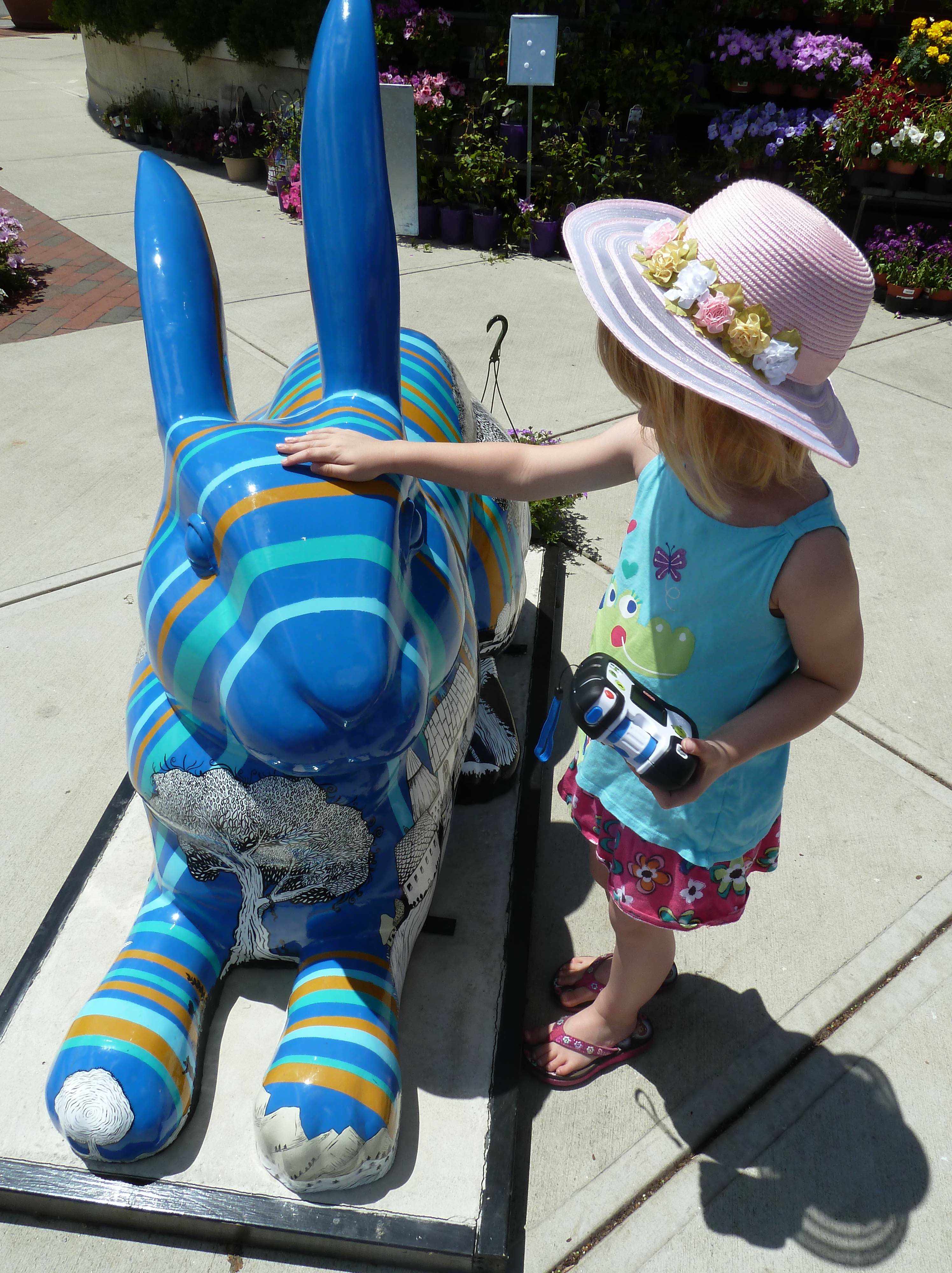 In addition to providing tips for viewing public art with kids ages 3-10, What’s That, Mom? offers much more detail on the 15 giant fiberglass rabbits included in the 2012 Dedham Public Art Project, including a complete set of (higher quality) photographs, influences on their various designs, and several interviews with the local artists who painted the bunnies.