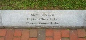 The Shays rebellion, fought in central and western Massachusetts, was fought by Daniel Shays and other veterans of the Revolutionary War in protest over the severe economic hardships they faced after war’s end. Shays, like many other veterans was unable to collect back pay owed to him by the government for his service in the war. When he found himself debt-ridden, stripped of his lands, and shamed in court for failing to pay taxes, he organized a protest to shut down county courts to stop the judicial hearings for tax and debt collection. (Photo: Shala Howell)