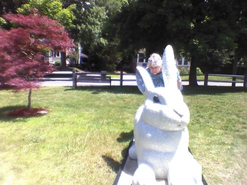 All of the bunnies are worth seeing in person, but the subtle beauty of this particular bunny simply can’t be captured on a five-year-old’s camera (or sadly, on that of her mother). If you are in Dedham this summer, I encourage you to see the Peace bunny for yourself. But you’ll have to hurry. I hear the bunny’s lease is up in September.