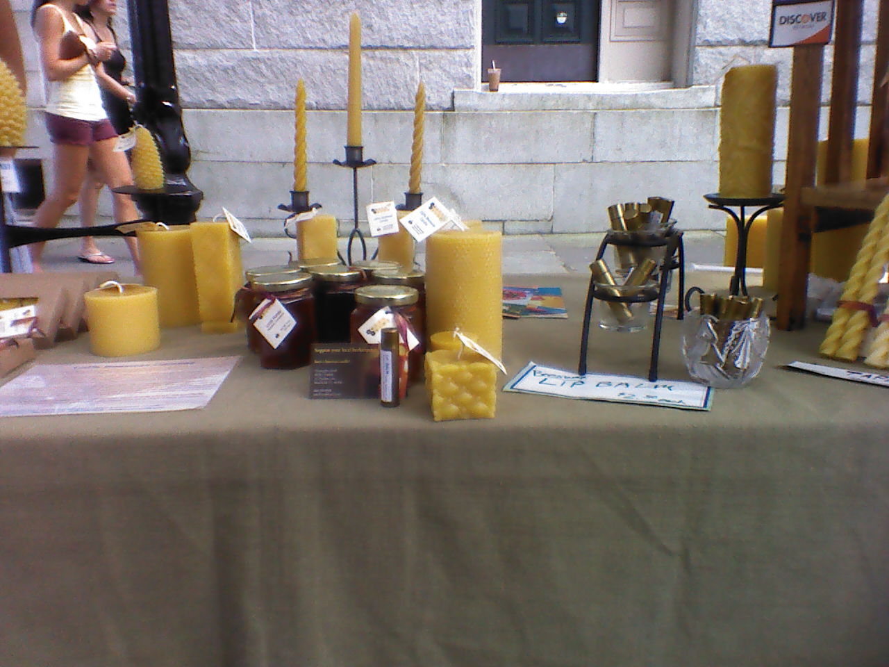 The beekeeper at Swift Farms was especially welcoming, and greeted The Five-Year-Old with fun facts about life in a hive. Her “did you know that of the thousands of bees in a hive, only about a hundred are male?” and “want to know what the inside of a hive smells like?–smell this” was precisely calculated to catch The Five-Year-Old’s interest. It also guaranteed that Swift Farms would have a customer for life, or at least for the day, as The Five-Year-Old’s grateful parents immediately stocked up on honey, candles, soap, and a gorgeous wooden honey dipper.