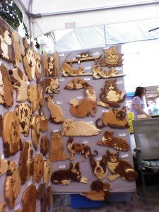 The Five-Year-Old’s other favorite spot was the wall of wooden kittens created by Mike Iacona at the Intarsia Creations booth. It was only with very great difficulty and the promise of a frozen lemonade that we were able to drag her out of there so that other customers could take a look.
