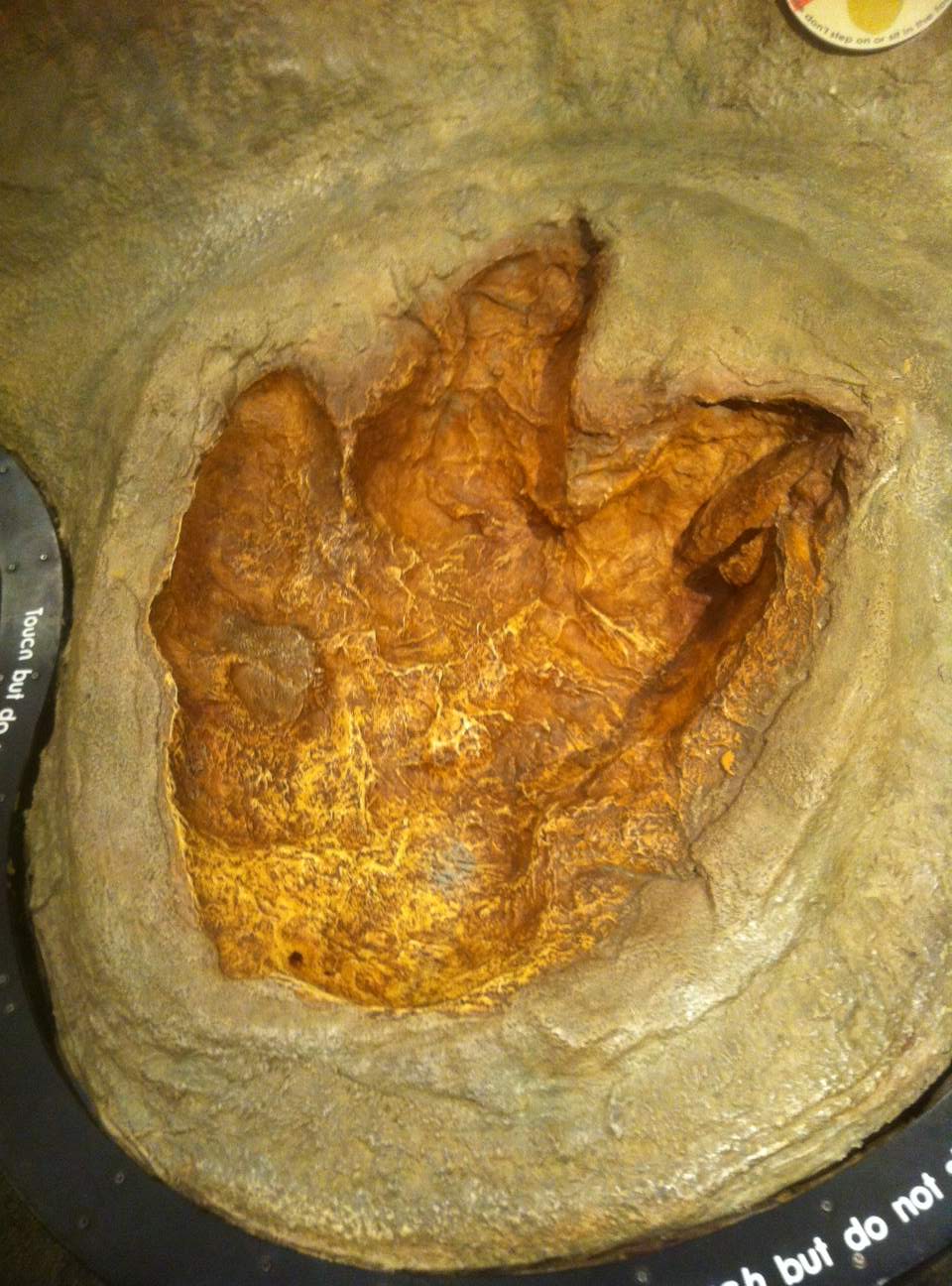 Next, The Five-Year-Old and I examined a very large and very shiny dinosaur footprint. Although dinosaur footprints are always engaging, this one had even less to tell us about dinosaur belly buttons than our old buddy Cliff.