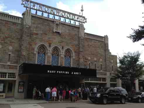Although the demands of bedtime (and the dearth of tickets) prevented The Five-Year-Old from attending either the opening gala on Friday night or the performance of the Hal McIntyre Orchestra on Saturday, we at Caterpickles Central have waited far too long for this theater to return to allow its opening to slip by unfeted. Which is why if you had been walking in downtown Norwood at 1:30 on Sunday afternoon you would have seen us waiting in line with various degrees of patience to get into the 2 o’clock showing of Mary Poppins.