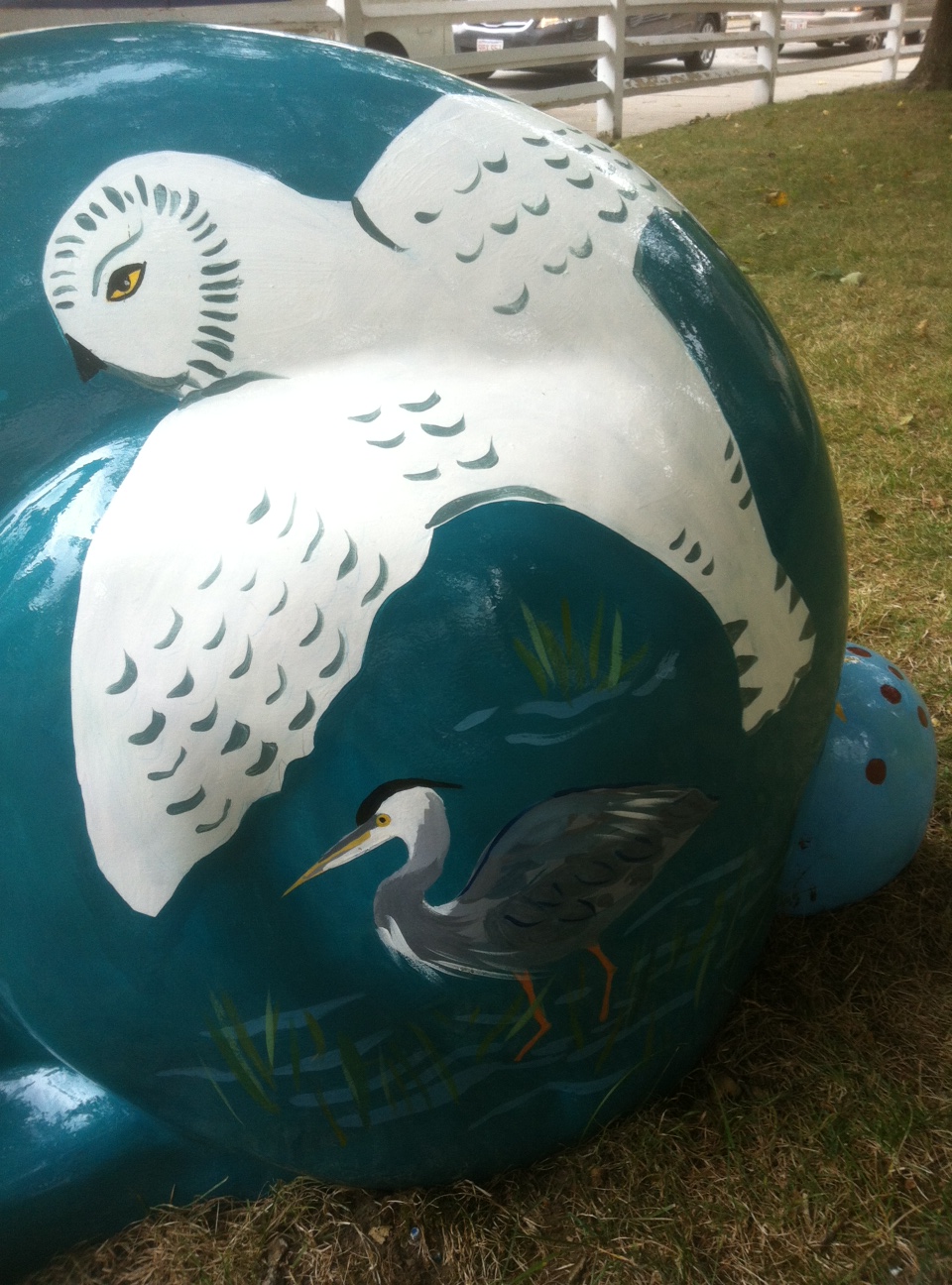 In developing the design for her rabbit, Angevin first considered its location and probable use. “I knew it would be outside in a public place for kids to see and climb on. So I thought why not put something on it that you can see and learn about, like the birds you would see in Dedham. That way you can walk around and see birds you want to learn about.”