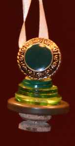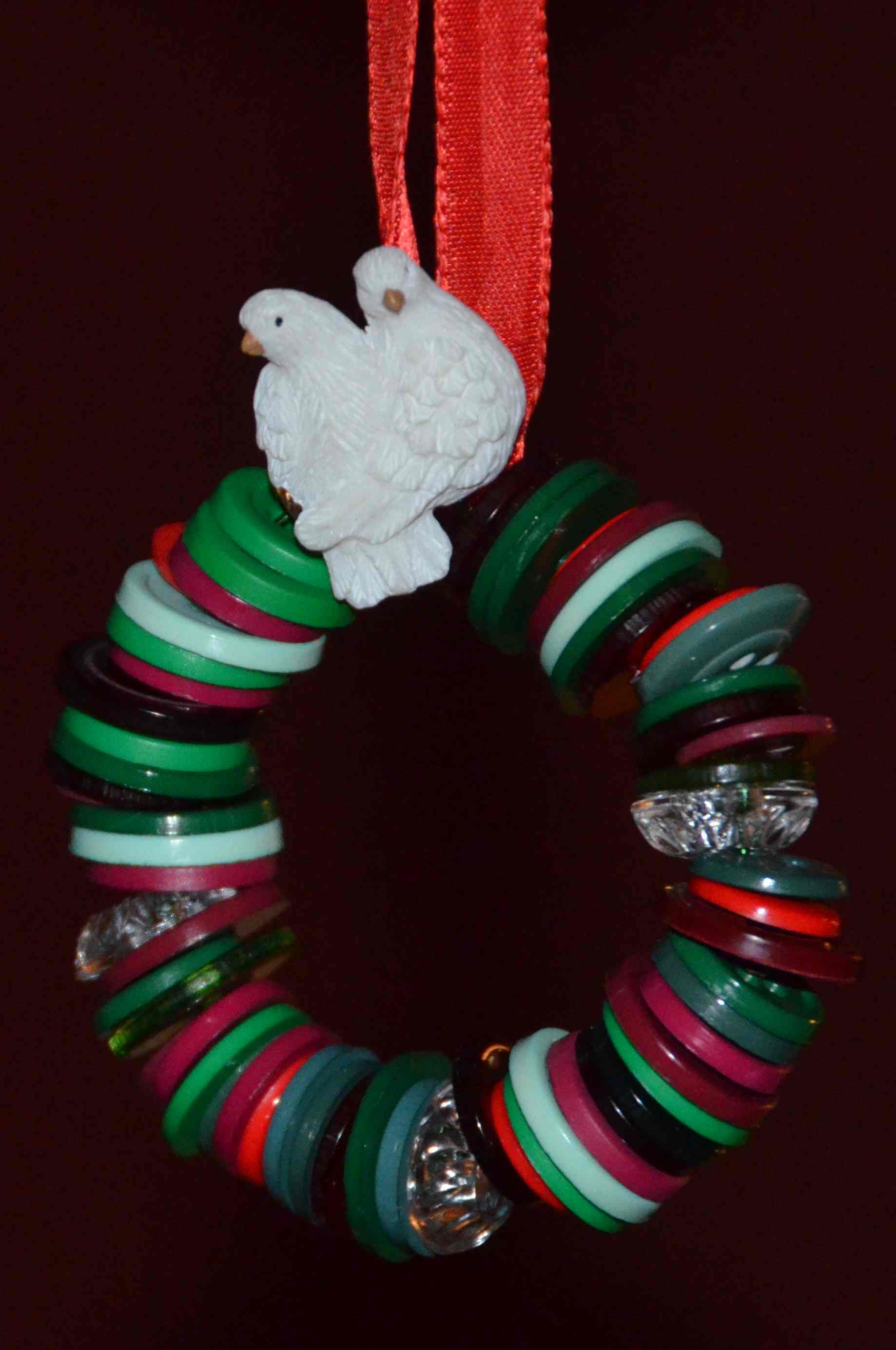 Both ornaments are relatively easy to do, and since I have a huge stock of buttons and ribbons already (inherited from my grandmother), the only cost to us was buying the 16-gauge copper wire and the 4-in-1 pliers beaders use for wire cutting and for spreading whatever pixie dust is required to keep their handmade jewelry from totally falling apart.