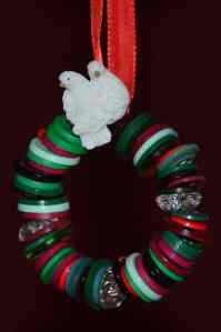 My goodness, can it be Friday evening already? Where has the day gone? Oh yeah. The Five-Year-Old and I have been busy testing out a few ideas for Christmas ornaments made of buttons.