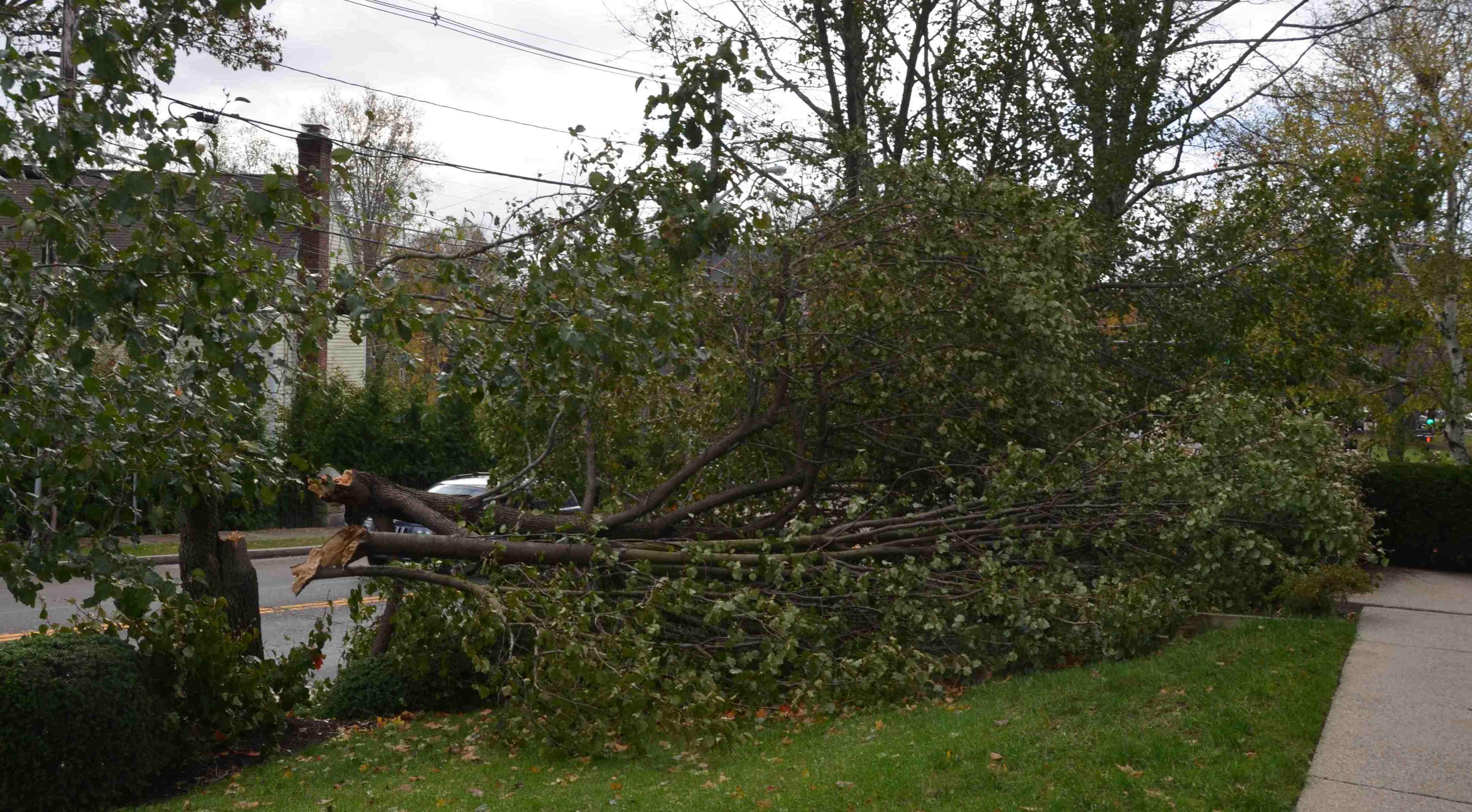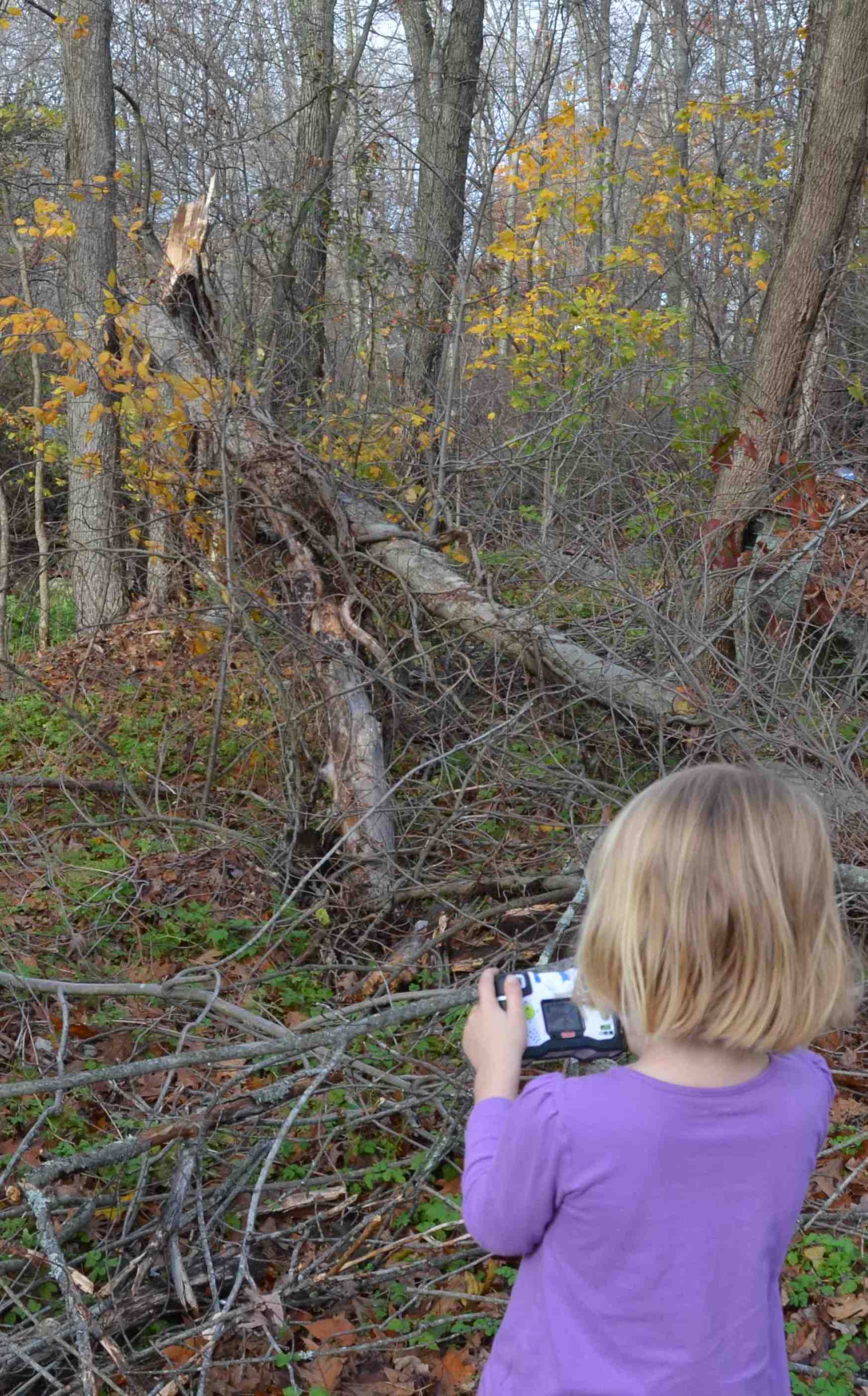 But after passing several fallen trees on our way to school yesterday, The Five-Year-Old asked if she could post a special report detailing the impacts of Hurricane Sandy on our area.