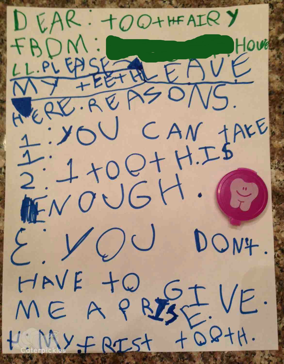 The Six-Year-Old’s letter to the Tooth Fairy. (Photo: Shala Howell)