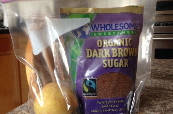 Something about plopping the apple directly into the brown sugar seemed a bit unsavory, so I found a gallon-sized Ziploc, dropped an opened bag of brown sugar into it, added one of my less yummy-looking apples, and sealed the whole thing up tight.