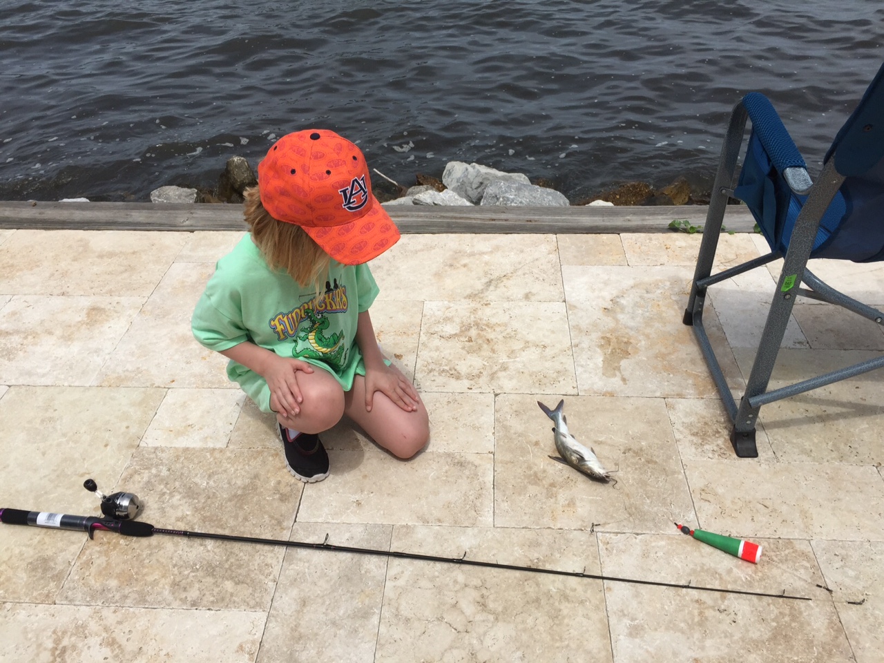 At last report, The Eight-Year-Old had caught 2 redfish and 7 catfish. (All catch & release of course.)