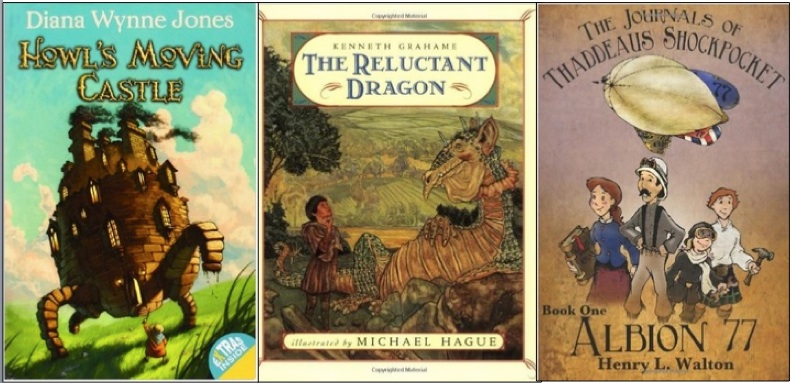Our mostly-weekly survey of the tidbits that cross The Eight-Year-Old’s desk. This week, The Eight-Year-Old boards a moving castle, travels by airship, and provides friendly encouragement to a reluctant dragon.