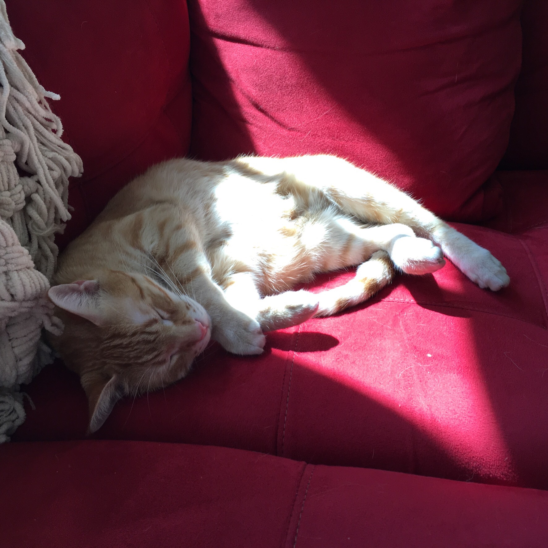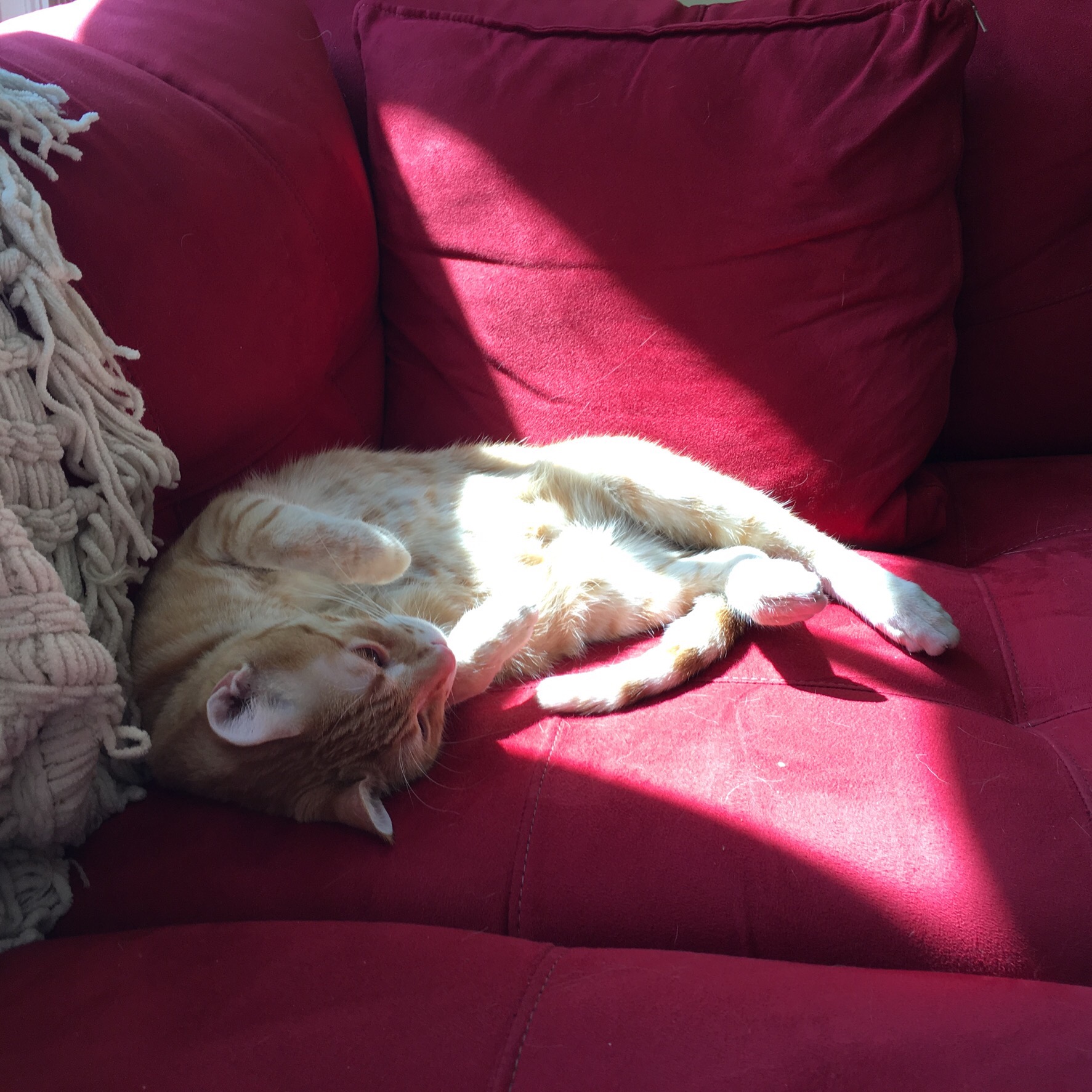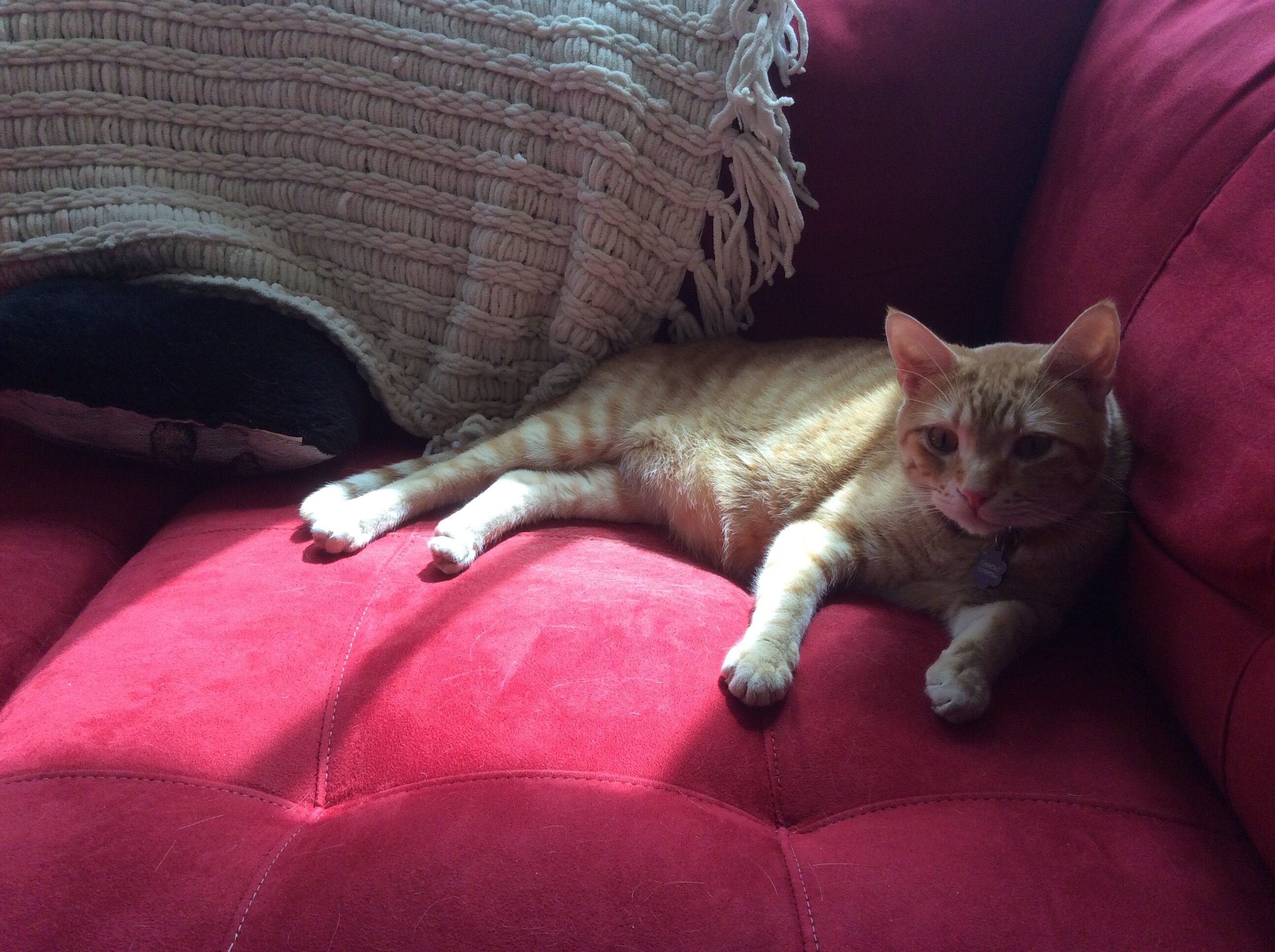 Canelo vs. the Very Large Red Reading Couch (Photo: Shala Howell)