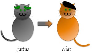 At least 600 years ago, the French took the Latin word for cat (cattus) and turned it into the French word for cat (chat).