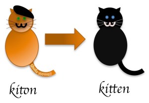 And because kittens are small cats, the French made a small word, kiton, to talk about them.