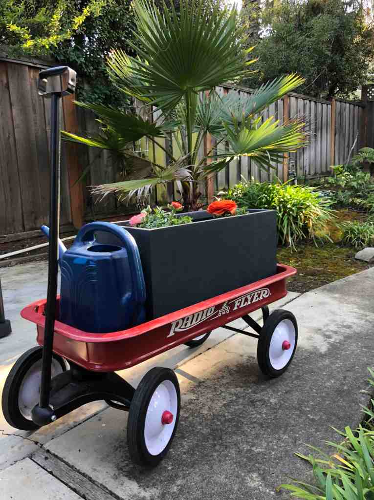 I have commandeered my daughter’s little red wagon. I’m planting the first batch of flowers, herbs, and vegetables today.