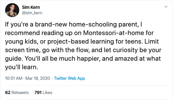 Sim Kern (@sim_kern) posted an excellent Twitter thread recently on how parents could use Montessori principles to integrate education into everyday activities.