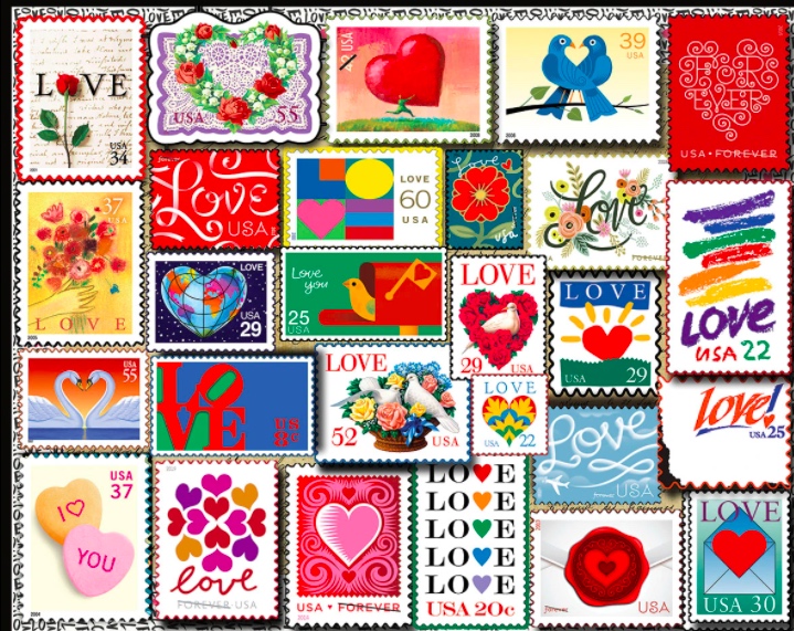 Sadly, the U.S. Post Office seems to have sold out of their puzzles, and at the time I prepared this post the Postal Store no longer had a listing for the Love Stamp puzzle at all. White Mountain Puzzles also lists the Love Stamp puzzle as being out of stock. However, Amazon has a large number of other stamp-based puzzles available for you to try.