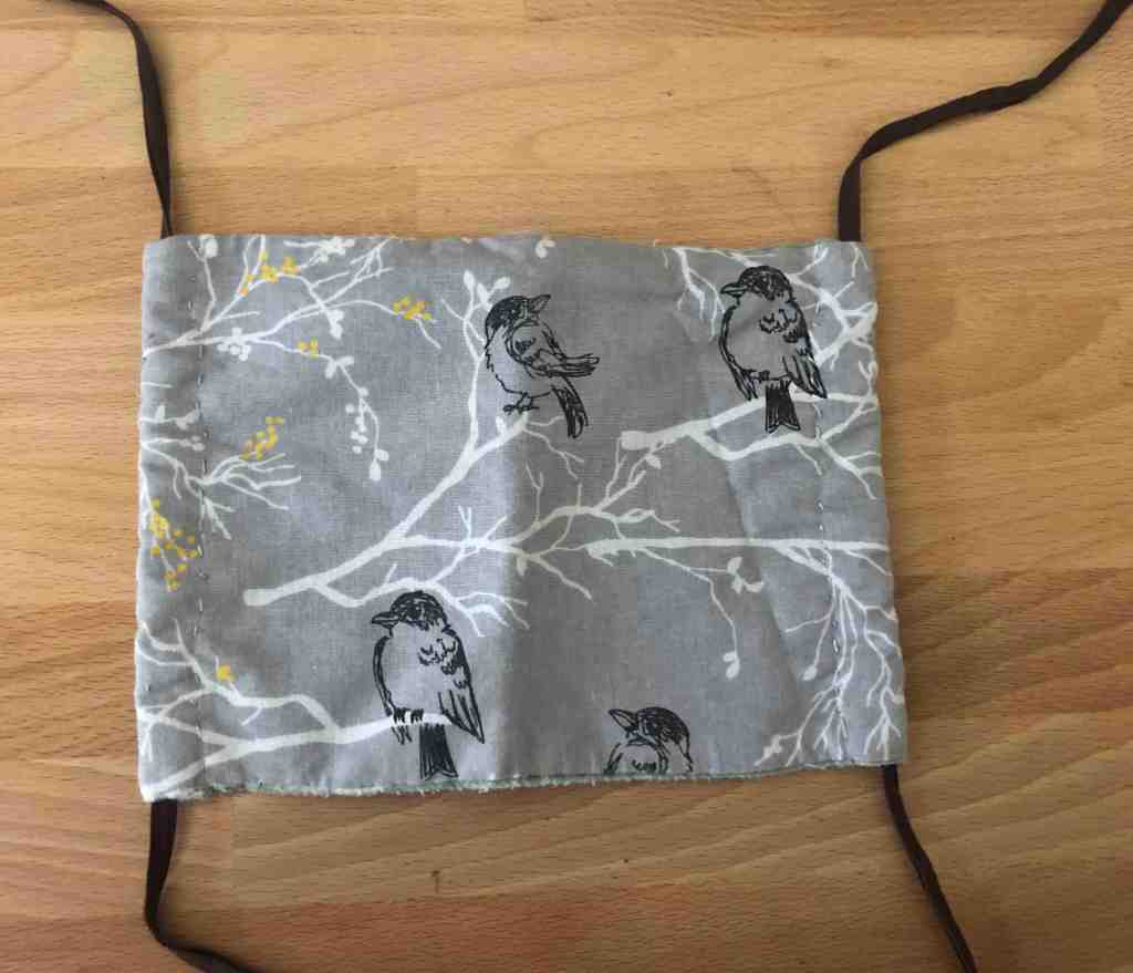 This mask is my husband’s favorite. It’s large enough to completely cover all the bits of his face that need covering, and the ties make it fit like the surgical masks he’s used to from his days in the ICU.